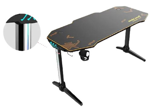 This gaming desk has a sleek carbon fiber texture and the gaming surface has plenty of space for your gaming monitors, gaming keyboard, and other gaming gear. The gaming surface measures 140cm wide by 64cm deep, supports up to 40 inch monitor.