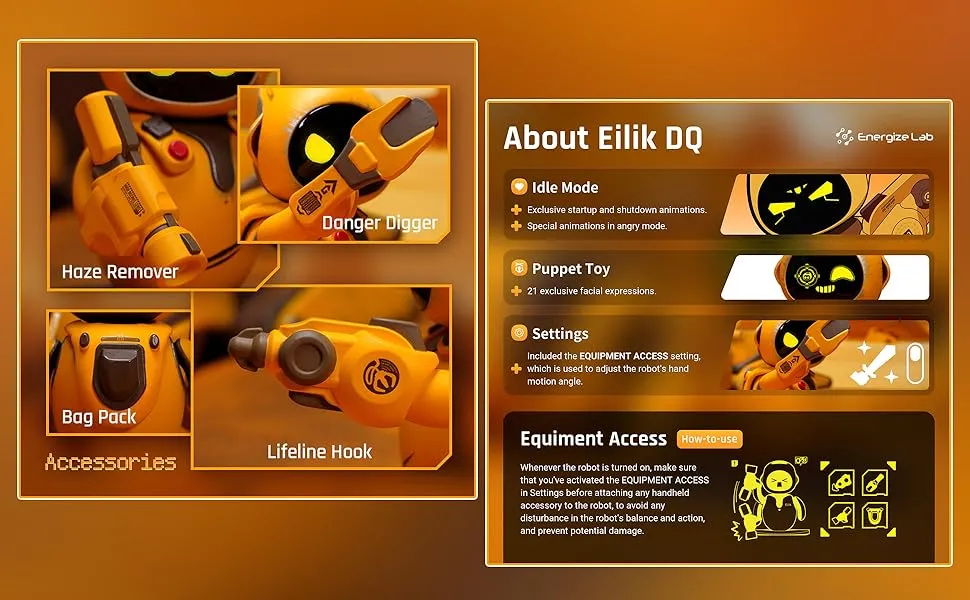 Eilik Unique Version is a fun, interactive desktop robot with a desert-inspired design, startup animation, and mini-games like shooting and fishing. It features touch-based emotional responses, wearable accessories, and constant updates to unlock new behaviors. Ideal for kids and adults, Eilik includes timers, themed shows, and interactive gestures—no voice control, just pure playful engagement.