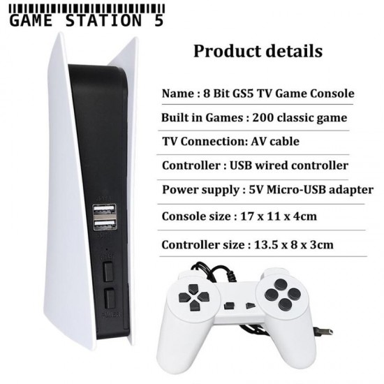 Product NameGame Station5 USB Wired Video Game Console (With 200 Classic Game + 2 Wired Controller)