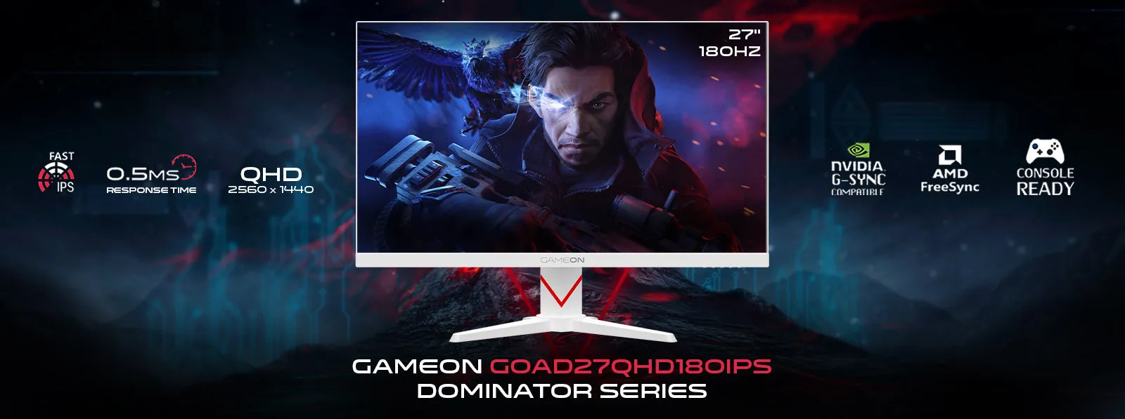 Unlock elite performance with the Gameon GOAD27QHD180IPS – a 27-inch 2560x1440 QHD gaming powerhouse designed to deliver next-level visuals and speed. With a contrast ratio of 1000:1, ultra-vivid 16.7M colors, and lightning-fast MPRT 0.5ms response time, it’s built for victory across every frame.