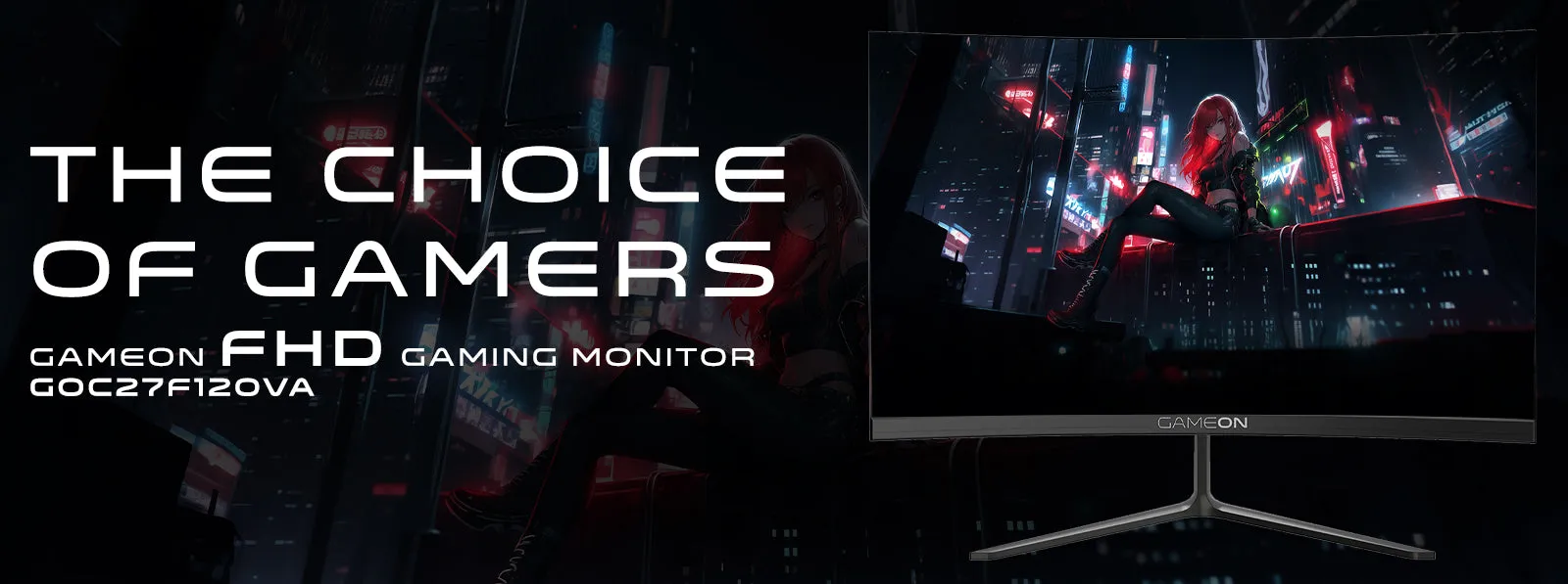 GAMEON GOC27F120VA Pro Series 27" FHD, 120Hz, MPRT 1ms, HDMI 2.1, VA Panel Curved Gaming Monitor (Supports PS5) - Black best price from Alfuhod Shop online GAMEON GOC27F120VA Pro Series 27" FHD, 120Hz, MPRT 1ms, HDMI 2.1, VA Panel Curved Gaming Monitor (Supports PS5) - Black and free same day delivery from Alfuhod in Kuwait.