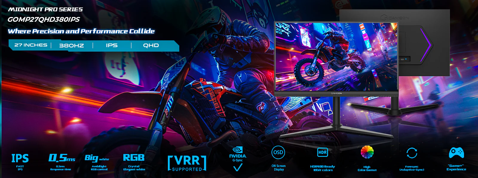 Gameon Gomp27qhd380ips Midnight Pro Series 27" Qhd, 380hz, Mprt 0.5ms, Hdmi 2.1, Fast Ips Gaming Monitor (Supports Ps5) - Black best price from Alfuhod