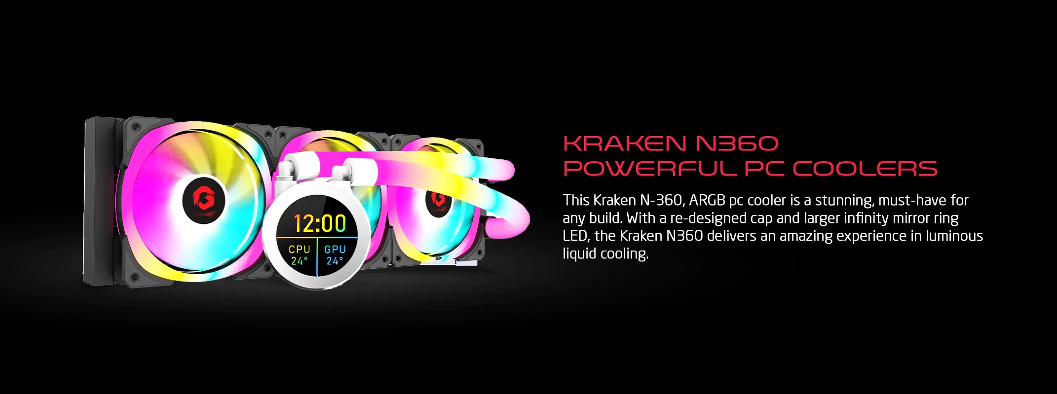 GAMEON - KRAKEN N360 LCD Display Liquid CPU Cooler 360mm With ARGB Tube - Black best price from Alfuhod