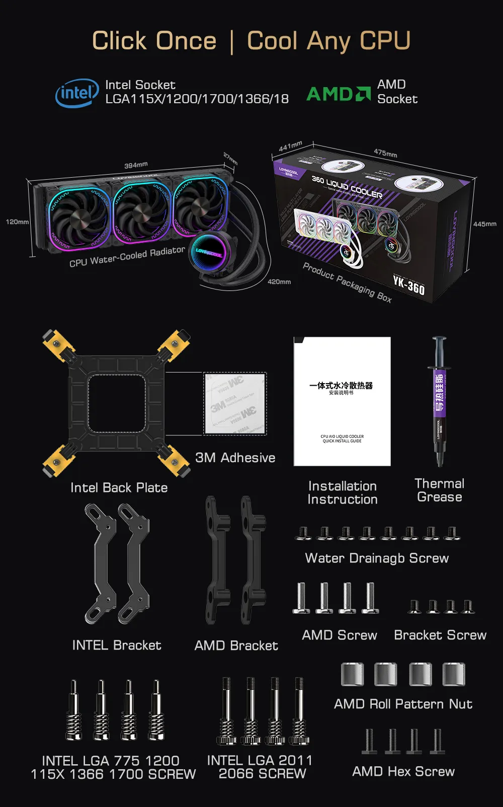 Lovingcool Radiator Yk-360 YK-01 Liquid Cooler - Black best price from Alfuhod Shop online Lovingcool Radiator Yk-360 YK-01 Liquid Cooler - Black and free same day delivery from Alfuhod in Kuwait.