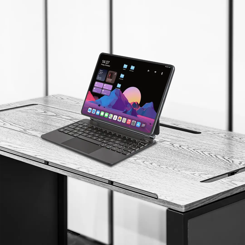 Powerology Smartcase Pro+ Wireless Keyboard Case can transform your iPad Pro 11" (M4) into a high-tech workstation of speed and precision. It comes with an in-built 500mAh battery, which gives extended use with 240 hours of working time without backlight keys and 3 hours in backlit mode. Recharging the battery is only a 2-hour affair by taking advantage of the Type-C interface. It remains available at your command all the time. Drives through Bluetooth V5.0 with a stable range of more than 10 meters. The case features customizable backlights, automatic wake/sleep, and a snap-on magnetic design for instant setup. It has a spacious trackpad for multi-gesture control and multimedia keys to optimize productivity. Carefully crafted, it also ensures easy access to pencils and is suitable for creative or professional work. This is the ultimate iPad Pro keyboard case, streamlined, smart, and incredibly handy.