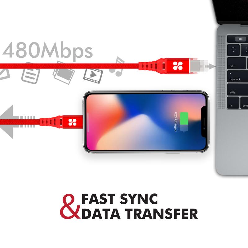 PROMATE PowerCord USB-C™ To Apple Lightning Data & Charge Cable 120CM - Red