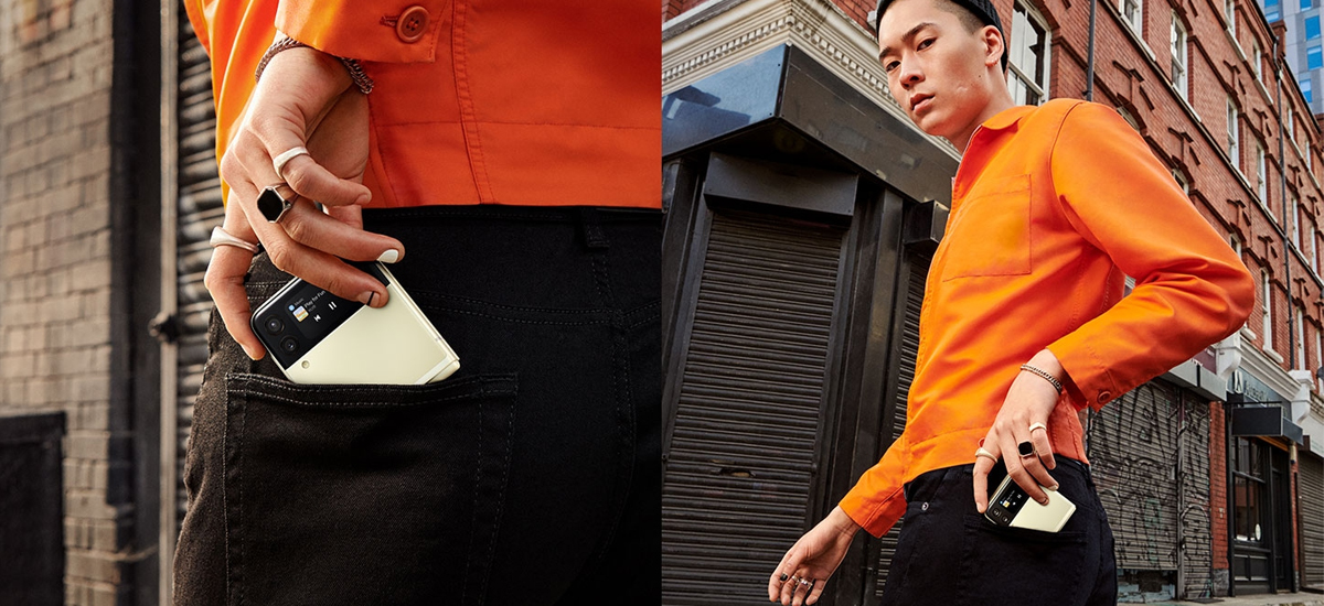 A full-sized smartphone that folds to fit small-sized pockets. Folded, Galaxy Z Flip3 5G measures 4.2 inches, fitting even in those †it has pockets!' outfits with room to spare.