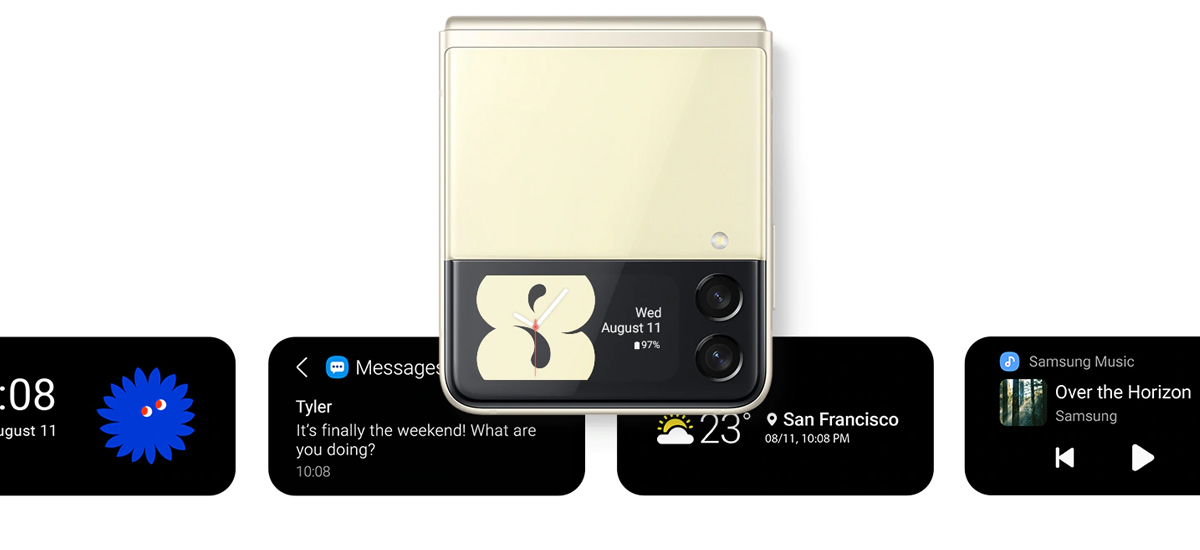 Check messages, take photos, play music and so much more, all without opening your phone. The 1.9-inch Cover Screen displays notifications and lets you intuitively interact with them. Pick your favorite display options for easy access, then make it your own with different styles and colors.