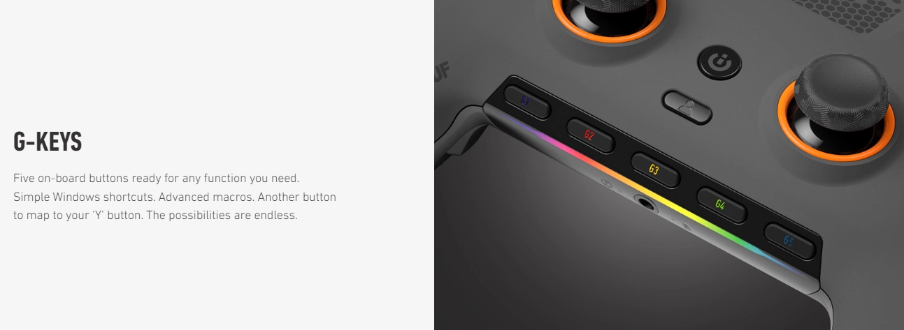 The PC controller built for Call of Duty®: Warzone™. Designed for fast responses and the ultimate control in the game with 11 more inputs. Featuring four customizable rear paddles, five G-Keys, adjustable instant triggers, interchangeable thumbsticks, and a non-slip performance grip.