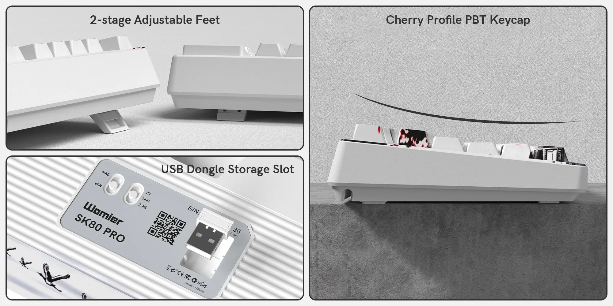 SK80 PRO comes in 1 new themes: Plum Blossom. Each theme is perfectly complemented by a matching wrist rest and mouse pad, creating a cohesive and stylish setup for your workspace.