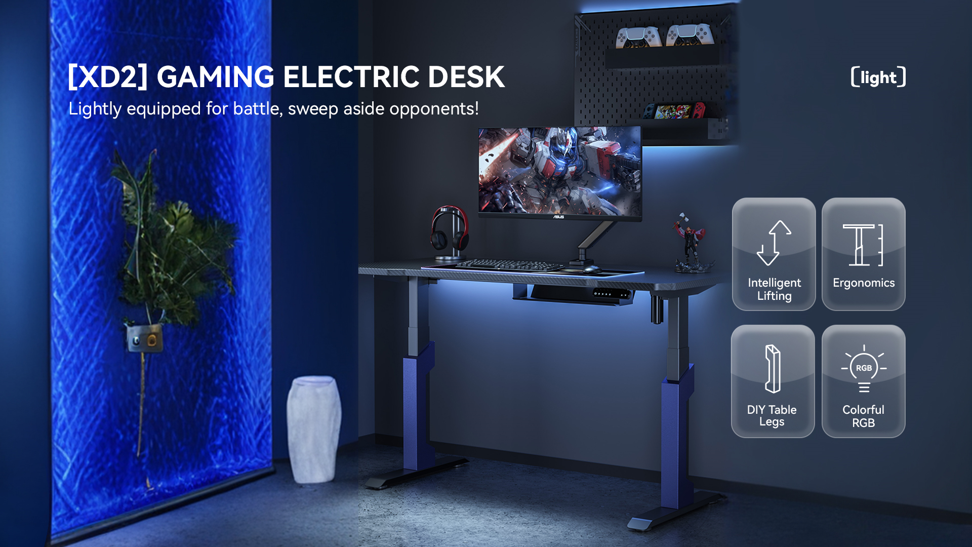 Xd2s Height Adjustable Rgb Gaming Desk Black/blue (140*70) best price from Alfuhod Shop online Xd2s Height Adjustable Rgb Gaming Desk Black/blue (140*70) and free same day delivery from Alfuhod in Kuwait.