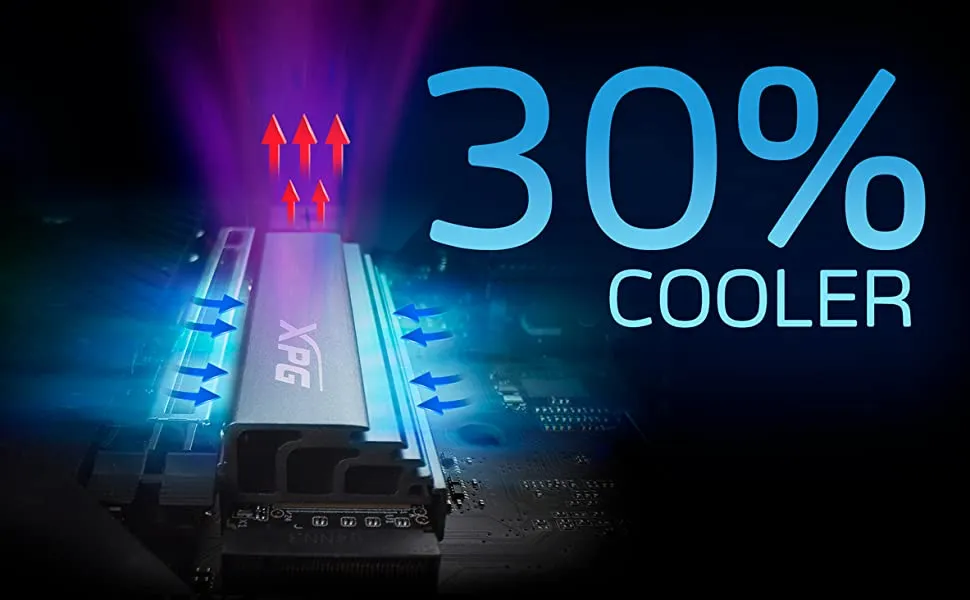 For reliable operations and stability, the S70 is equipped with XPG’s proprietary heat spreader design. The aluminum heat spreader features a terraced structure and hollow chambers underneath for increased surface area and airflow. This design can reduce temperatures by up to thirty percent.